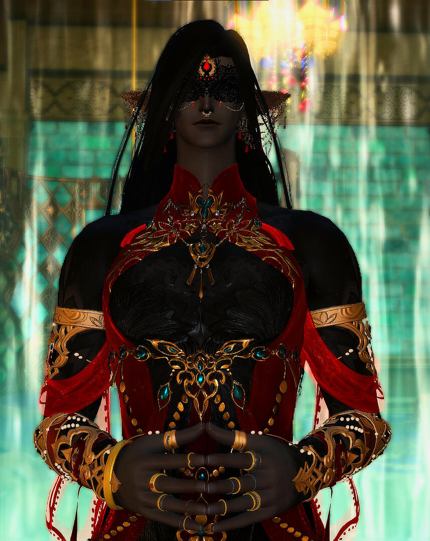 "I shall be the architect that weaves thy desires into existence."Raven-haired, mid-bronze toned skin with extensive and intricate blackwork tattoos, bedecked head to toe in layers of delicate gold and ruby jewelry and striking crimson silk garments. Possesses a low, soft-spoken baritone, tall, willowy frame, long, skillful fingers, and a calm, collected, patient demeanor suited for those who desire a more relaxed experience, but as a mage, he also has a few 'special requests' if inquired about in more private environs. Possesses the alias 'The Architect', and the eye covering is a feature.Bio