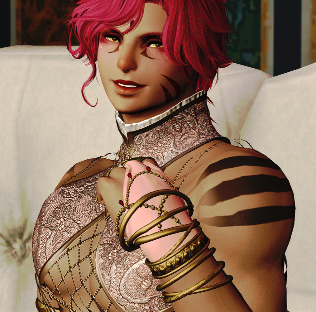 The Lotus serves as the Gilded Asp's Head of House. He is skilled in traditional Hannish dance, various sorts of massage, and thoroughly enjoys displaying his flexibility for his clients. Originally from the Brume, his might be a face you recognize should you spend time in the seedier sections of Ishgard.Rates