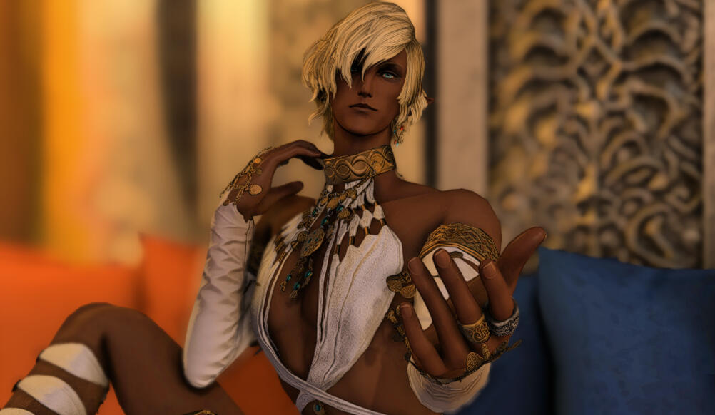 The Lotus serves as the Gilded Asp's Head of House. He is skilled in traditional Hannish dance, various sorts of massage, and thoroughly enjoys displaying his flexibility for his clients. Originally from the Brume, his might be a face you recognize should you spend time in the seedier sections of Ishgard.Rates