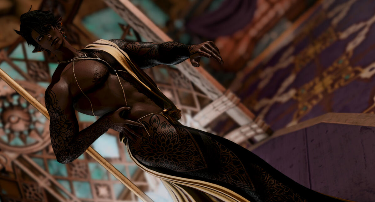 The Blackbird is a lithe beauty of dark hair and sea glass colored eyes that he uses to seduce would-be clients. Catlike and graceful, this elezen is often found lounging in the laps of those who pique his interest. With a penchant for the indecent and a drive to slake his insatiable carnal appetites, the Blackbird is just as quick to please as he is to tease. He is content to serve those of any gender, so long as there is some semblance of chemistry.Rates:
